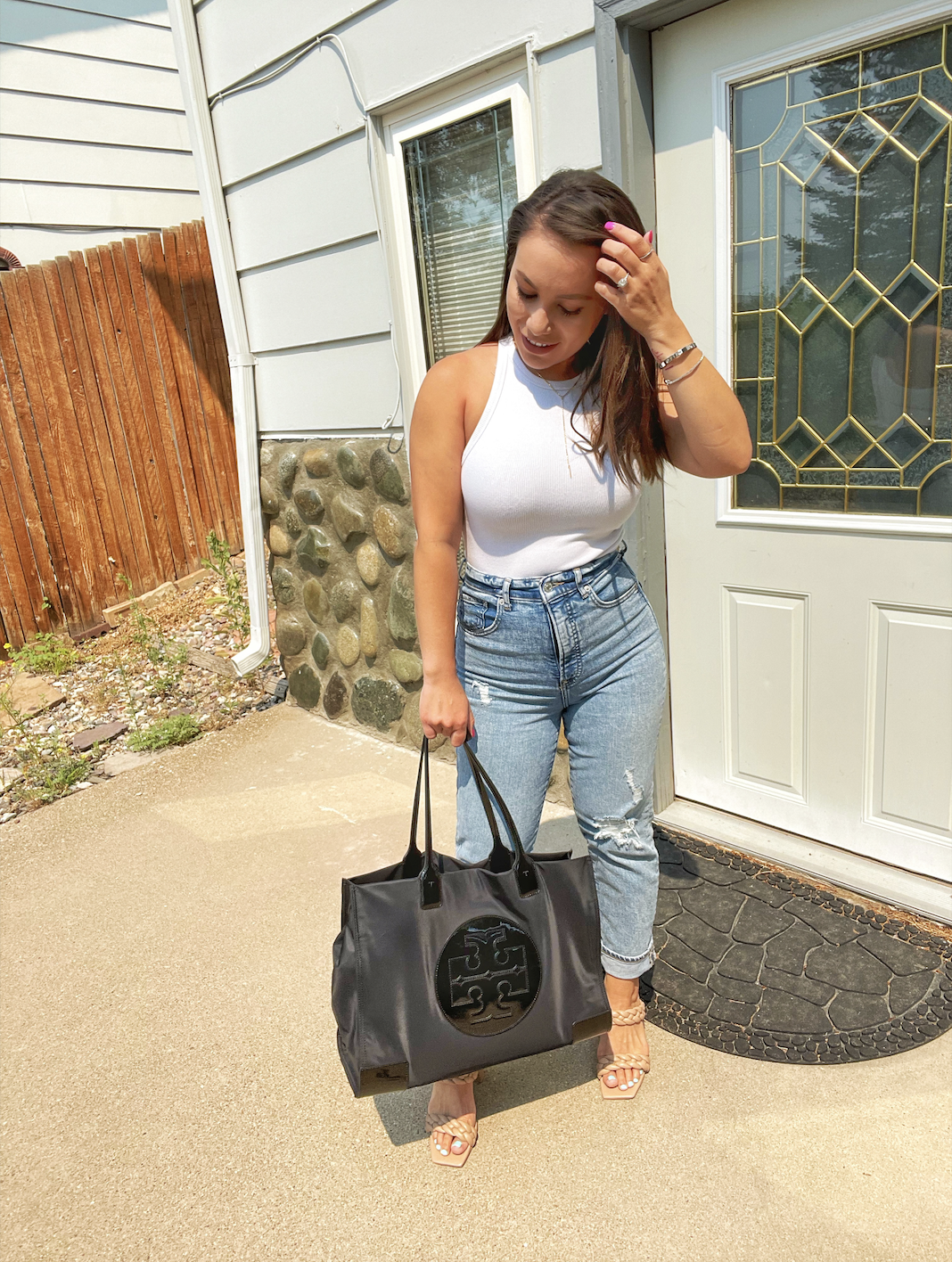 My everyday work bag is my Tory Burch Ella Patent tote. It fits everything I need to carry to and from work and I love the look – it goes with any outfit!